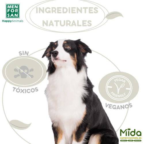 Contiene extracto de margosa, geraniol y lavandino, insecticidas naturales, que previene y repele todo tipo de insectos, pulgas, garrapatas mosquitos y ácaros. Recomendado para su uso para cachorros, animales convalecientes, en gestación, muy ancianos, con miedo al agua o para la limpieza en los duros días del invierno cuando el baño habitual no es muy indicado.