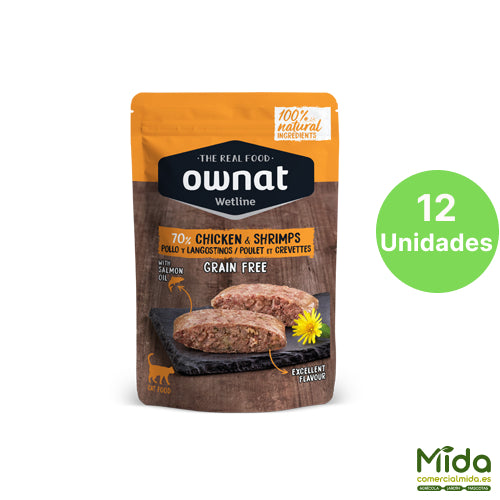 Alimento Húmedo OWNAT Wetline Pouch Chicken & Shrimps para Gatos