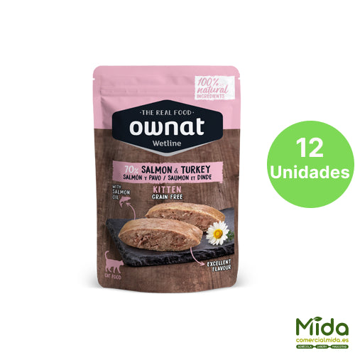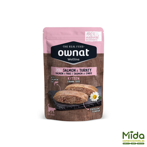 Alimento Húmedo OWNAT Wetline Pouch Kitten Salmon & Turkey para Gatitos