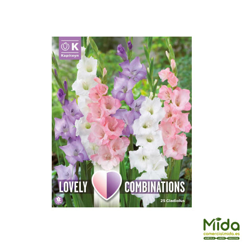 COMBI GLADIOLI WHITE, BLUE AND PINK Pack x25 Bulbos. EAN 8711805051280.