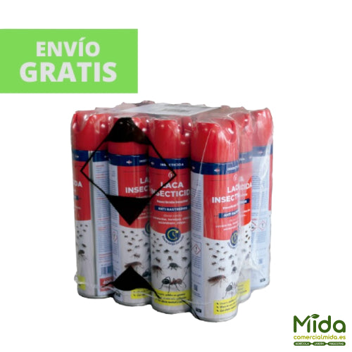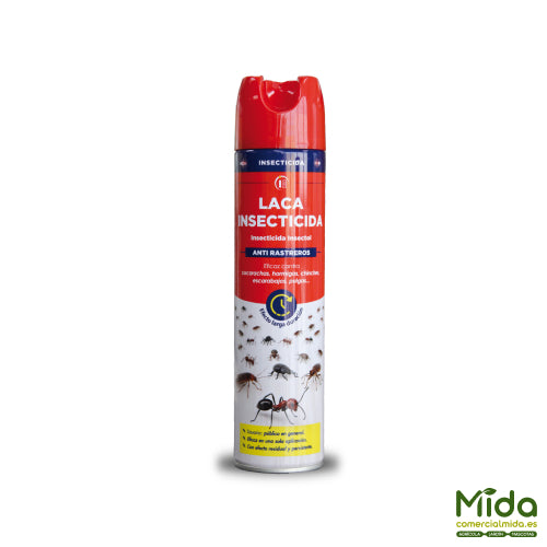 Laca Insecticida Anti Rastreros en spray 400 ml de uso doméstico con alta persistencia para el control de cucarachas, hormigas, arañas y otros insectos rastreros. Su formulación combina cifenotrina (0,30%) e imiprotrina (0,10%), ofreciendo derribo rápido y efecto residual prolongado. Una sola aplicación crea una barrera protectora que permanece activa hasta 1 año en superficies adecuadas. Ideal para pulverización localizada en zócalos y suelos, especialmente durante el período de uso: marzo a octubre.