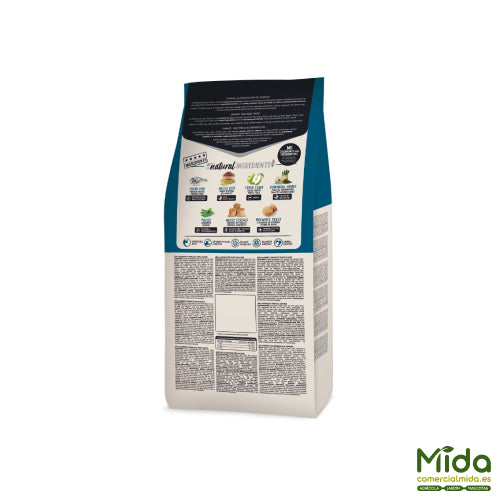 Alimento completo y equilibrado, a base de pescado fresco e ingredientes completamente naturales. Mejora la elasticidad y fortaleza del pelo y la piel de los felinos de todas las edades y razas.