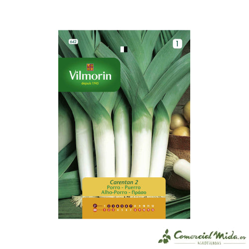 Las simientes de Vilmorin de puerro Carentan 3 son semillas de cultivo fácil. Esta variedad rústica y precoz posee un follaje largo, lanceolado y plano y con un bulbo blanco y alargado. El fuste, la parte blanca y alargada, es el trozo aprovechable. El sistema radicular es abundante y el pie es corto pero muy ancho. Estas plantas se desarrollan en cualquier clima, siendo muy favorables las temperaturas suaves y el clima húmedo. Se debe controlar las malas hierbas que puedan aparecer en el terreno y formar regularmente pequeños montones de tierra alrededor de la planta para obtener tallos largos y blancos. La forma de cultivo de los puerros puede hacerse en semilleros o directamente sobre el terreno.